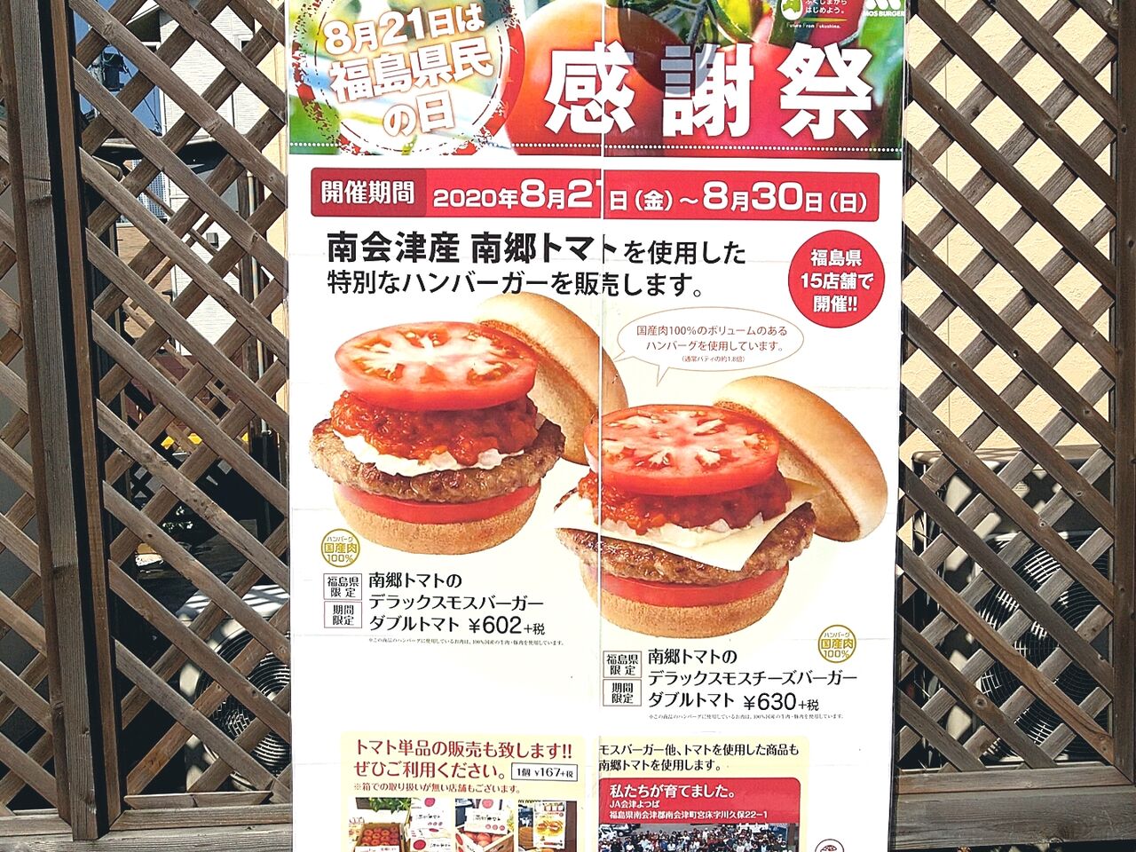 販売場所:福島県内15店舗のモスバーガー