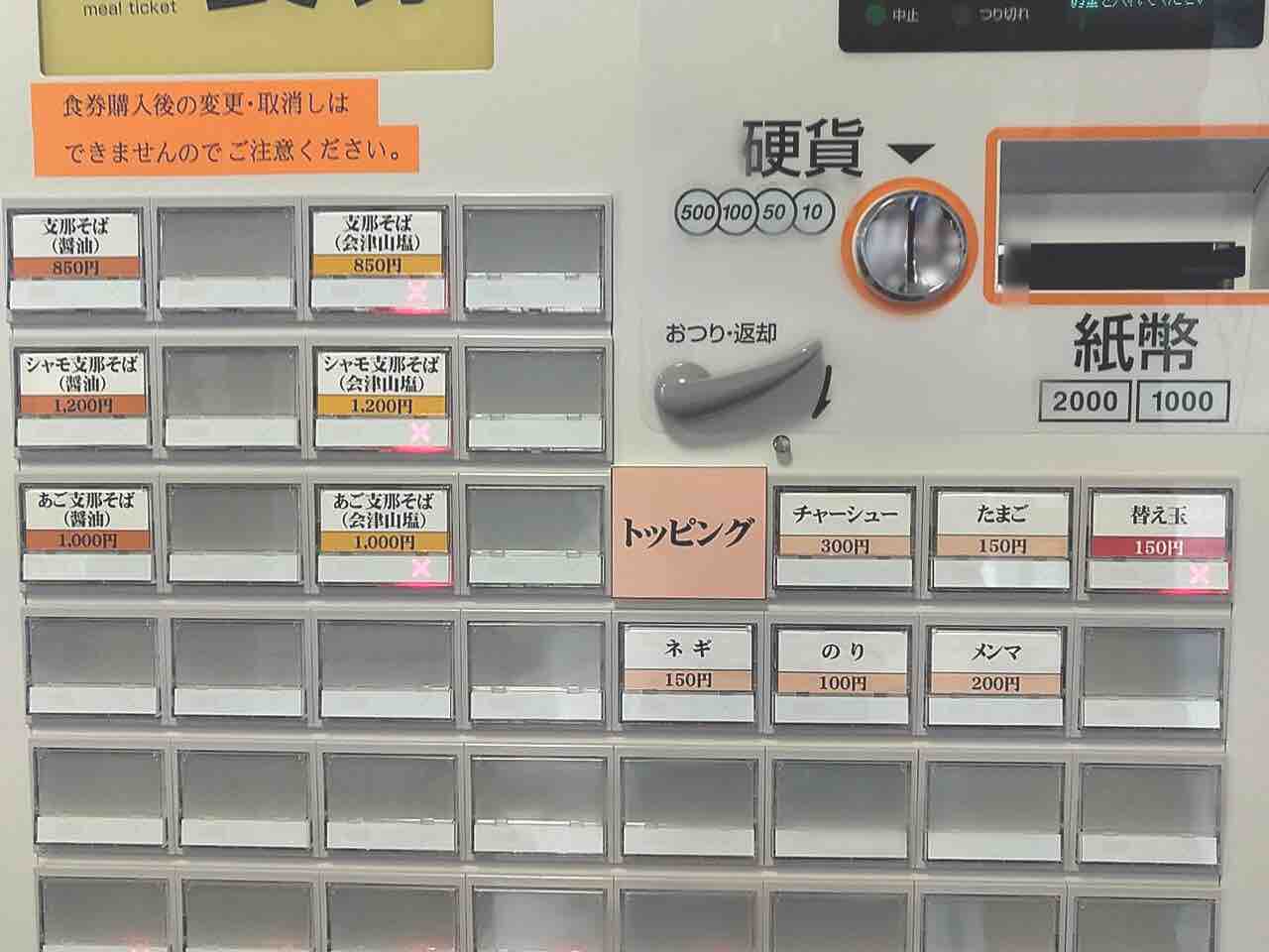 メニュー。食券機制。